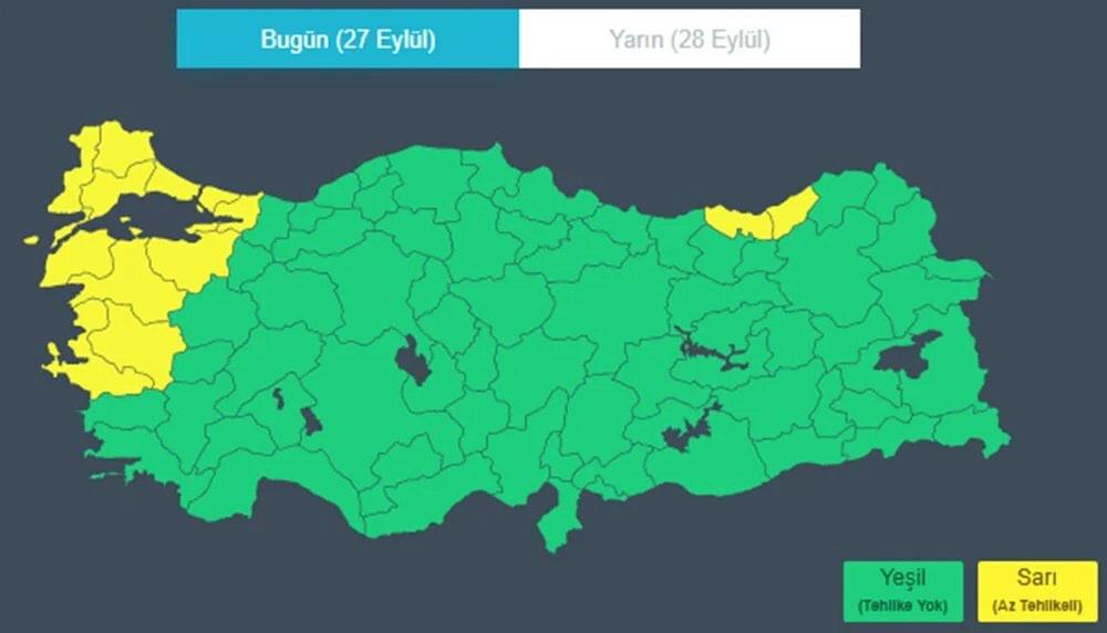 Meteoroloji tarafından Balıkesir, Bursa, Çanakkale, Edirne, İstanbul, İzmir, Kırklareli, Kocaeli, Manisa, Rize, Tekirdağ, Trabzon ve Yalova için sarı kodlu fırtına ve kuvvetli yağış uyarısı yapıldı.