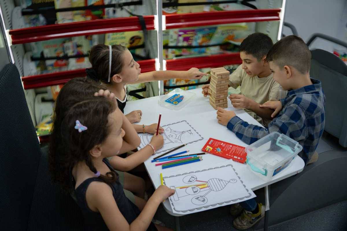 buluştururken; Gezici Kütüphane, sayfalar ortasında hayal gücünü besleyerek minik okurlara kitap sevgisini aşıladı. Çocuklar birbirinden farklı etkinlikler ve oyunların yer aldığı Gezici Kütüphane’de eğlenirken öğrenme fırsatı yakaladı.