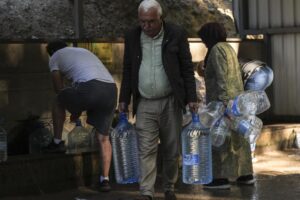 Ankara’nın Mamak ilçesinde yaşanan su kesintisi nedeniyle vatandaşlar etrafta bulunan çeşmelerden su temin ediyor.