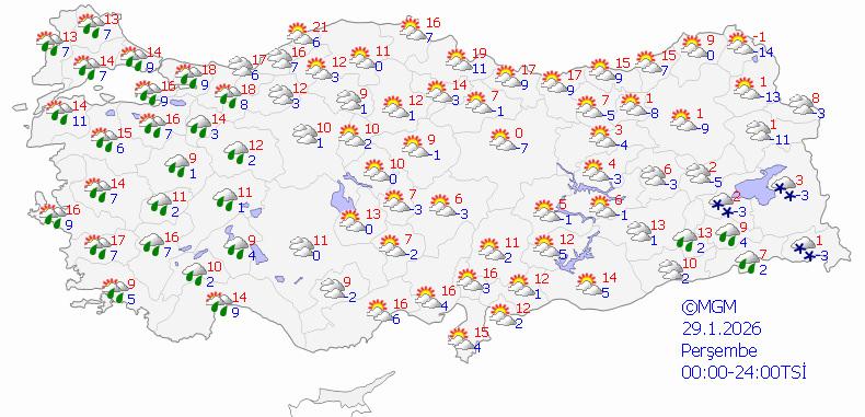 Hava sıcaklığının yurt genelinde artmaya devam etmesi, kuzey, batı ve iç kesitlerde mevsim normallerinin 4-6 derece üzerinde, geçtiğimiz hafta adeta donan Doğu ve Güneydoğu kentlerinde ise mevsim normalleri civarında seyredeceği öngörülüyor. Yurdun iç ve Doğu kısımlarında don ve buzlanma riski de sürüyor.