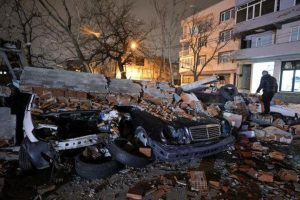 Duvar kenarında park halinde bulunan araba, minibüs ve pikap tipi 10 araç molozların altında kaldı.