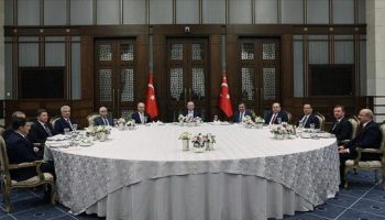 Cumhurbaşkanı Recep Tayyip Erdoğan, yasama, yürütme ve yargı organlarının temsilcilerini Cumhurbaşkanlığı Külliyesi’ndeki akşam yemeğinde ağırladı.