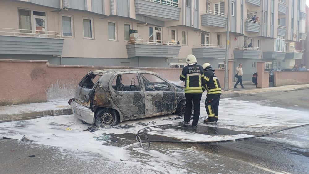 Çorum’da öfkeli kadın, eşinin otomobilini ateşe verdi