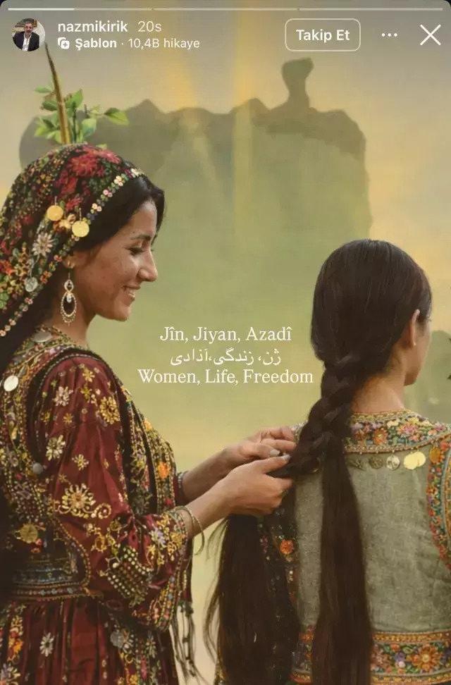Uzak Kent’te ‘Nadim Baybars’ karakterine hayat veren Nazmi Kırık paylaştığı görselle DEM Partililerin akımına dayanak verdi. Kırık, saçını ören bir bayanın fotoğrafını paylaştı.