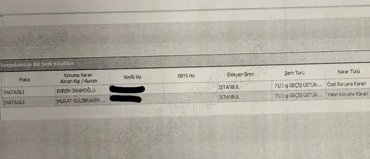 Yapılan incelemelerde 34 CET 061 plakalı resmi araç dikkat çekti. Aracın şahsen Ekrem İmamoğlu ismine 10 Eylül 2019- 20 Mayıs 2021 tarihleri ortasında muhafaza kararı olduğu saptandı.