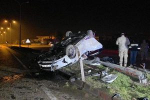Kaza, Gaziantep – Hatay yolu Hassa ilçesi Aktepe Mahallesi’nde yaşandı. Şoförünün direksiyon hakimiyetini kaybettiği Ö.Ü. yönetimindeki 31 BAE 894 plakalı araba, aydınlatma direğine çarparak takla attı.