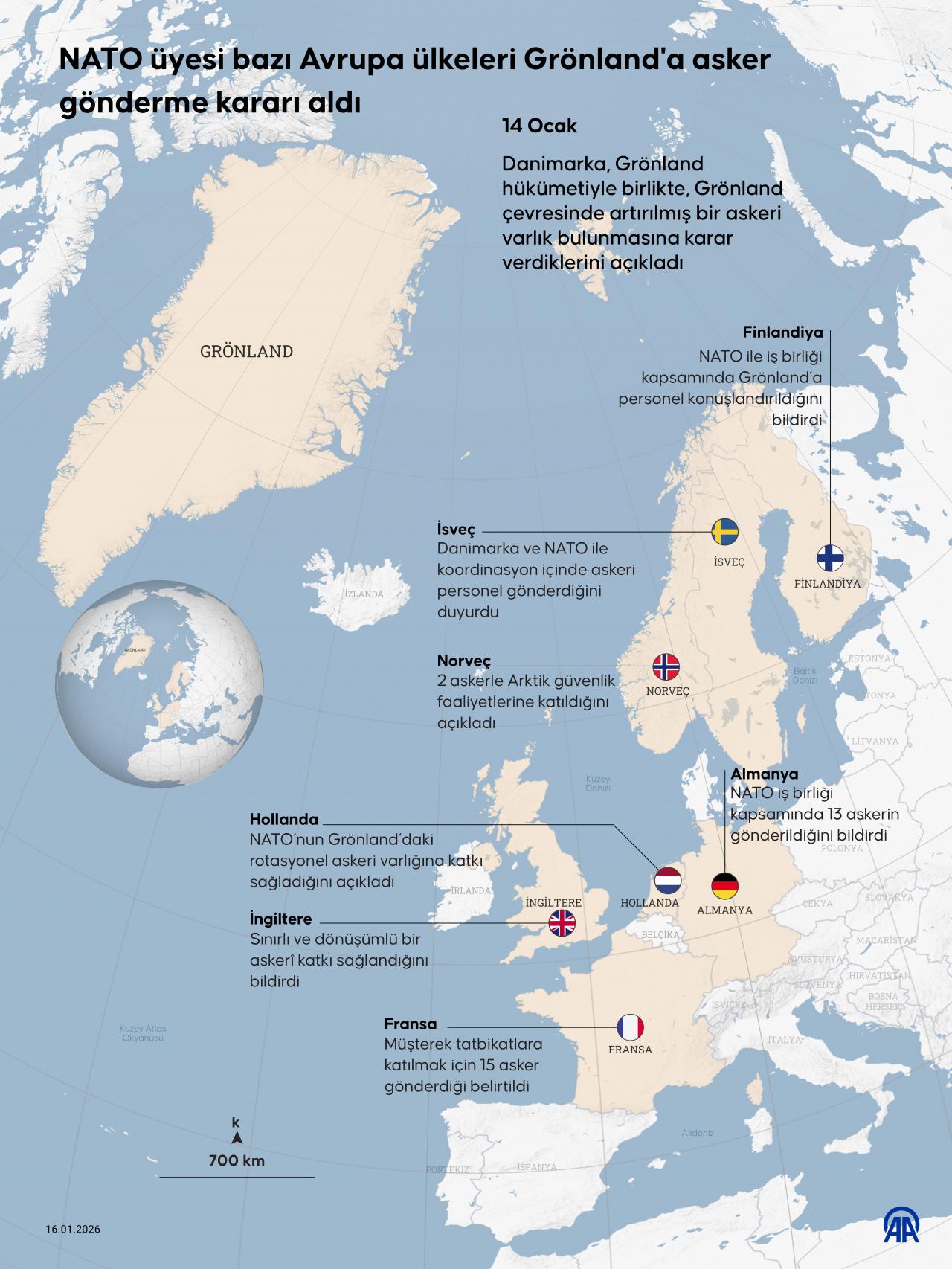 NATO’nun Avrupa kanadı, adayla dayanışma bildirisi olarak Grönland’daa sembolik sayıda askeri işçi konuşlandırma kararı aldı.