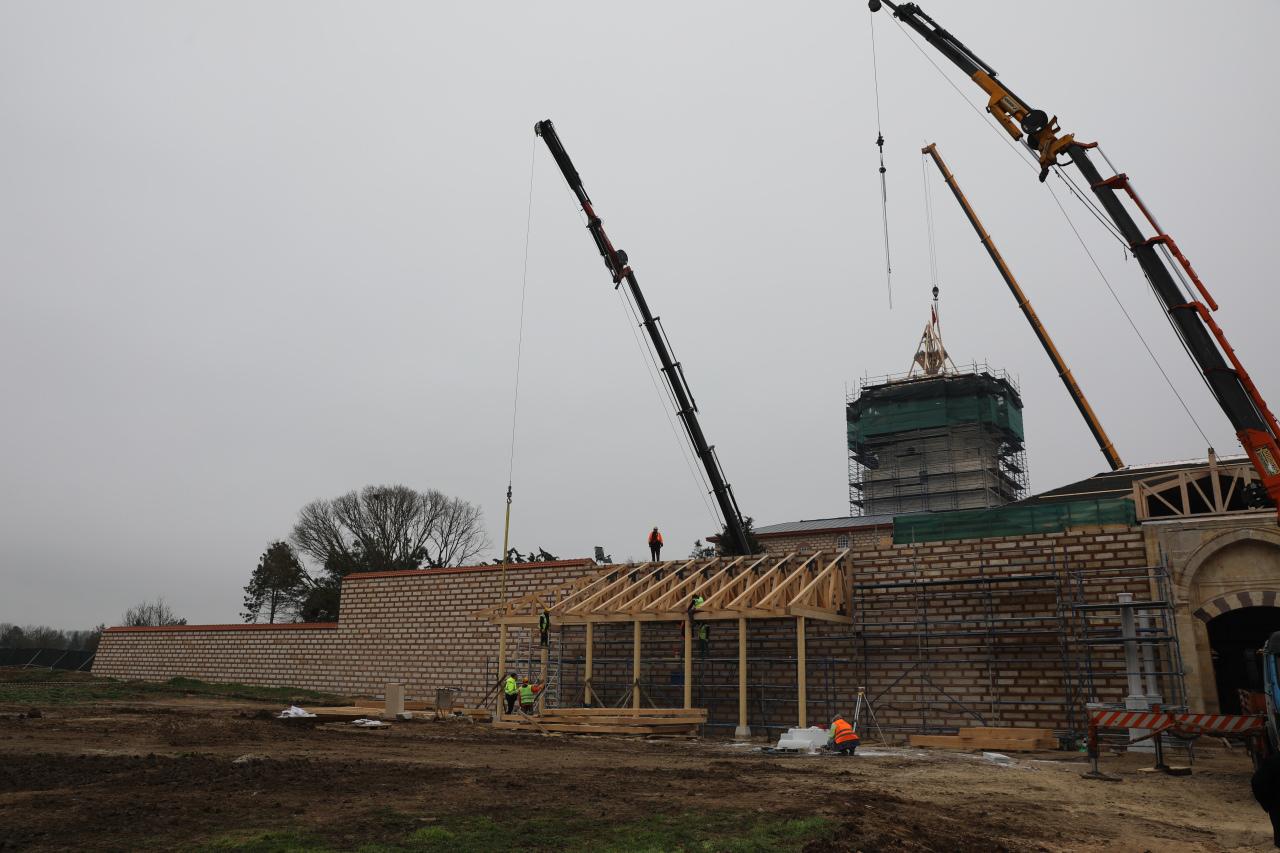 İkinci avluda yer alan Arz Odası, Babüssaade girişi ve Kum Kasrı’nda vücut duvarları özgün haline kavuşturuldu. Ahşap konstrüksiyon çatı ve duvarlar tamamlanırken üst kurşun örtü ile Babüssaade revaklarında imalatlar sürüyor. Arz Odası’nı çevreleyen ahşap sütunlu revaklar tamamlandı, yer kaplamaları, ahşap tavan ve tezyinat işleri devam ediyor.