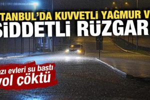 İstanbul’da kuvvetli yağmur ve şiddetli rüzgar! Bazı evleri su bastı, yol çöktü