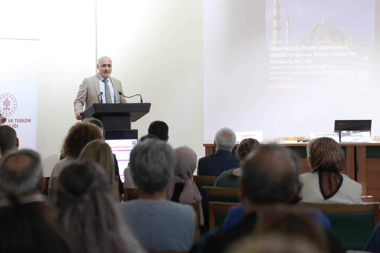 İstanbul’un tarihi alanlarının UNESCO Dünya Mirası Listesi’ne girişinin 40. yılı aktiflikleri kapsamında gerçekleştirilen seminer, vakıf kültürünün kültürel mirasın korunmasındaki rolünü ele aldı.