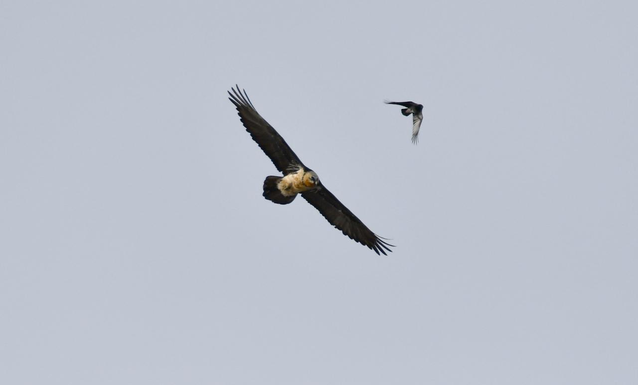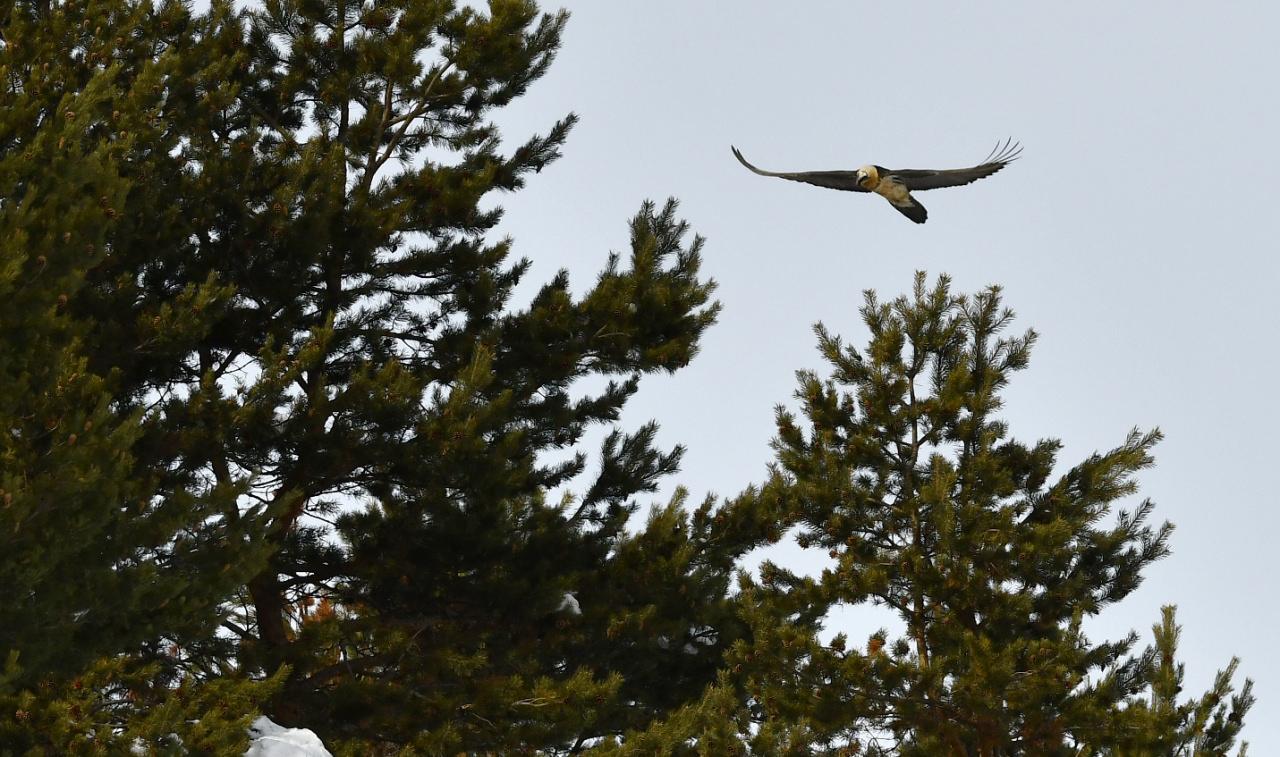 Sarıkamış ilçe merkezine 5 kilometre uzaklıktaki Acısu mevkisinde görülen sakallı akbaba, bir mühlet havada süzüldükten sonra gözden kayboldu.