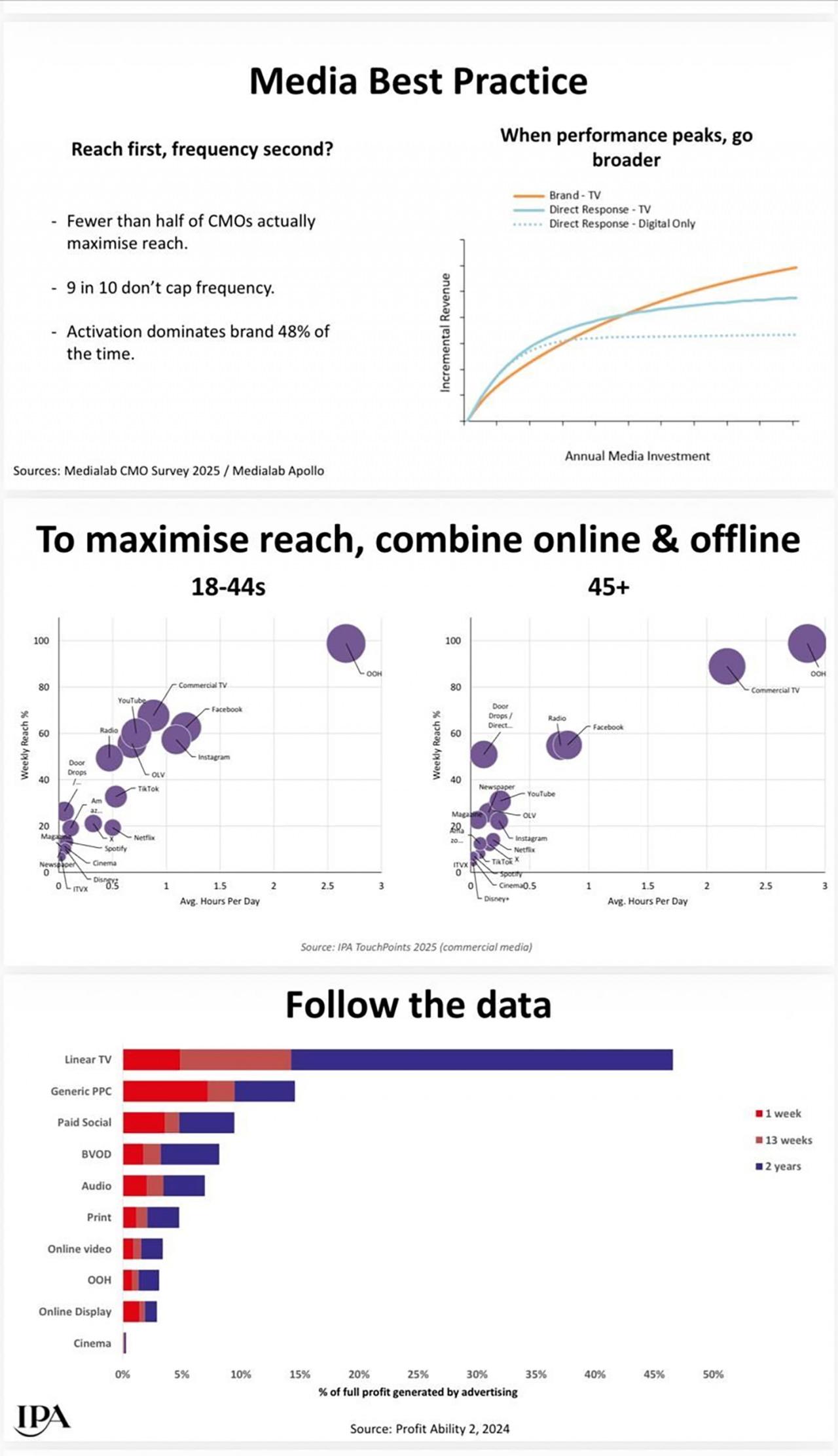 Ülker’in değerlendirmesinin dayandığı ana fikir, pazarlama literatüründe de güçlü bir karşılığa sahip. Les Binet’in IPA bilgilerine dayanan çalışması, reklamda “etkililik” tartışmasını tek bir formülle özetliyor: Kâr = ROI × Harcama. Yani yalnızca “verimlilik” (ROI) değil, bütçenin ölçeği de sonuca direkt tesir ediyor.