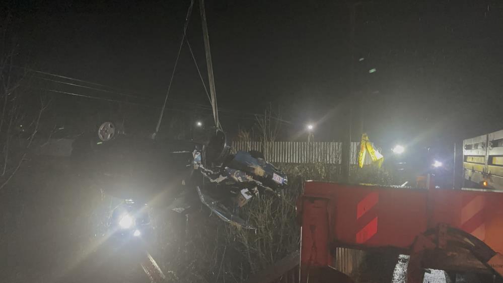 Araba vinçle çaydan çıkartılırken, olayla ilgili inceleme başlatıldı.