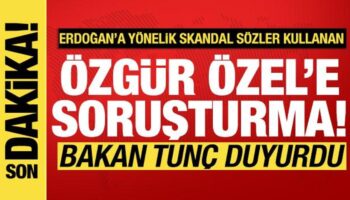 Son dakika: Adalet Bakanı Yılmaz Tunç; CHP Genel Lideri Özgür Özel'e, Cumhurbaşkanı Erdoğan'a yönelik sarf ettiği hakaret içeren sözlerle ilgili Ankara Cumhuriyet Başsavcılığınca soruşturma başlatıldığını duyurdu.