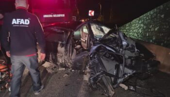 Bartın'da sağanak nedeniyle kayganlaşan yolda denetimden çıkan arabanın bariyerlere çarptığı kazada 4 kişi yaralandı.