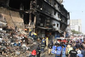 Dawn gazetesinin haberine nazaran, Karaçi’deki alışveriş merkezinde çıkan yangının akabinde takımlar, enkazda arama çalışmalarına devam ediyor.