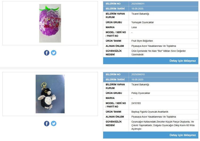 Yapılan kontrollerin akabinde Bakanlık, iki adet oyuncağın kullanımının inançsız ve sıhhatsiz olduğunu tespit etti.