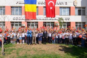 Yunus Emre Enstitüsünce (YEE) yürütülen “Tercihim Türkçe Projesi” kapsamında Türkçenin seçmeli ders olarak müfredata dahil edildiği Romanya’da yeni eğitim öğretim yılı vesilesiyle merasim düzenlendi. Başşehir Bükreş’teki 80 Numaralı Ortaokulda düzenlenen merasime Türkiye’nin Bükreş Büyükelçisi Özgür Kıvanç Altan, YEE Romanya Müdürü Mustafa Yıldız, 80 Numaralı Ortaokul Müdürü Tatiana Ramona Rostas Covalev ve çok sayıda öğretmen, öğrenci ve veli katıldı.