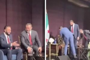 Birleşmiş Milletler (BM) doruğu için dünyanın dört bir yanından başkanların buluştuğu New York’ta dikkat cazibeli bir an yaşandı. Suriye Cumhurbaşkanı Ahmed Şara, Suriye Dışişleri Bakanı Esad Şeybani ile birlikte Suriye diasporasıyla bir ortaya geldikleri toplantıda protokol tertibine damga vurdu. Aktiflikte Şeybani’ye standart bir sandalye verildiğini gören Şara, kendisinin oturduğu rahat koltuğu kaldırttı ve tıpkı sandalyeden talep etti. Tertip yetkililerinin değişiklik yapmasının akabinde iki isim de tıpkı tip sandalyeye oturdu. Hareket salondakiler tarafından alkışla karşılandı.