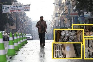 Suriye güvenlik güçlerinin 4 günde terörden arındırdığı Halep’in Şeyh Maksud ve Eşrefiye mahallelerine istiflenen terör silahları birer birer ele geçiriliyor.