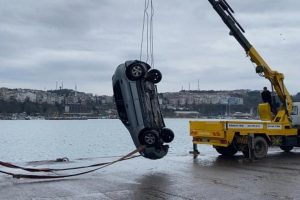 Denize uçan araba ise sabah saatlerinde vinç yardımıyla sudan çıkarıldı. Polis grupları tarafından olaya ait inceleme başlatıldı.