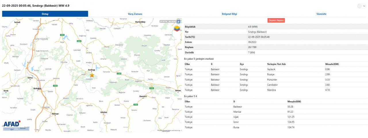 Afet ve Acil Durum İdaresi Başkanlığı (AFAD) internet sitesinde son dakika bilgisine nazaran Balıkesir Sındırgı merkezli 4.9 büyüklüğünde zelzele meydana geldi.