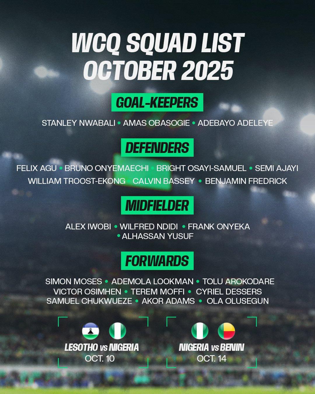 Beşiktaş forması giyen Wilfred Ndidi ve Galatasaray forması giyen Victor Osimhen, Nijerya Ulusal Kadrosu’na davet edildi.