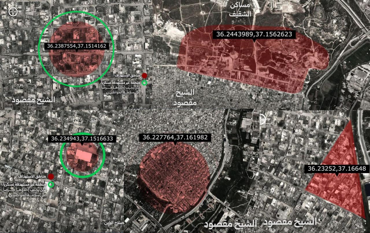 Özellikle Pir Maksud’daki geniş ölçekli kırmızı alanlar ve Deyr Hafir’deki geniş yerleşkeler, SDG’nin mühimmat depolarıyla birlikte ana ikmal ve toplanma merkezlerinin de deşifre edildiğini ortaya koyuyor.