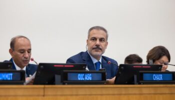Bakan Fidan, “Filistin Devleti’nin BM’ye tam üyeliğinin gerçekleşmesi için Filistin’in tanınması istikametinde son periyotta yakalanan ivmeden faydalanmalıyız. İsrail’in kabahatlerini milletlerarası toplumun önünde ifşa etmeliyiz” dedi.