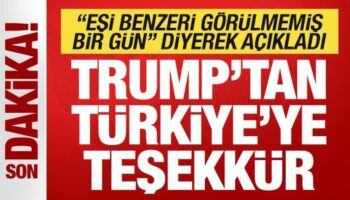 Son dakika haberi… ABD Başkanı Donald Trump, “Bu süreci bir ortaya getirmemde bana yardımcı olan Türkiye’ye teşekkür etmek istiyorum. Bugün çok özel bir gün, tahminen eşi gibisi görülmemiş bir gün” dedi.