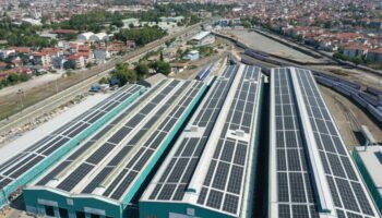 Bakan Uraloğlu, Türkiye Raylı Sistem Araçları Sanayi AŞ Sakarya Bölge Müdürlüğü’nde kurulan güneş güç santrali (GES) ile Ulusal Süratli Tren ve Gaziray üzere projelerin üretiminde güneş gücünün kullanılmaya başladığını duyurdu.