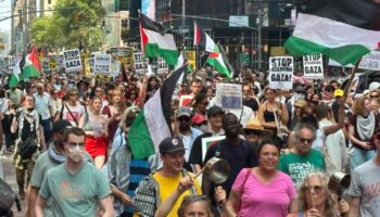 ABD’nin New York kentinde on binlerce kişi, İsrail’in Gazze’deki taarruzlarını protesto etmek için sokaklara çıkarak, bölgedeki açlığa son verilmesi, insani yardımların önünün açılması ve acil ateşkes sağlanması davetinde bulundu.