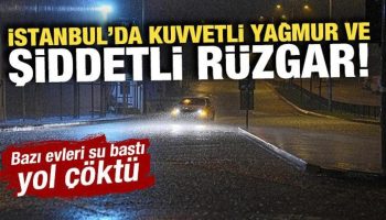 İstanbul’da kuvvetli yağmur ve şiddetli rüzgar! Bazı evleri su bastı, yol çöktü