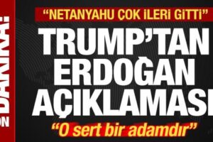 Gazze’deki savaşa ait Cumhurbaşkanı Recep Tayyip Erdoğan’ın kendisine çok yardım ettiğini belirten Trump, “Erdoğan çok yardım etti. O sert bir adamdır ancak benim arkadaşımdır ve kusursuz bir iş çıkardı. Netanyahu planı kabul etmek zorundaydı. Netanyahu, Gazze’de çok ileri gitti ve İsrail dünya çapında büyük bir dayanak kaybetti. Artık tüm bu takviyesi geri getireceğim” tabirlerini kullandı.