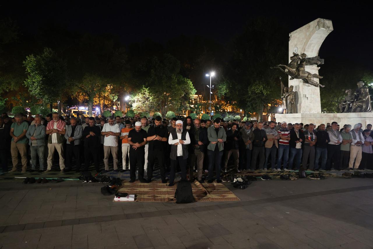 Fatih’teki Saraçhane Parkı’nda yatsı namazında toplanan iştirakçiler Kur’an-ı Kerim okudu. Aksiyonda, İsrail’in saldırısı altındaki Filistin ve Gazzeliler için dua edildi.