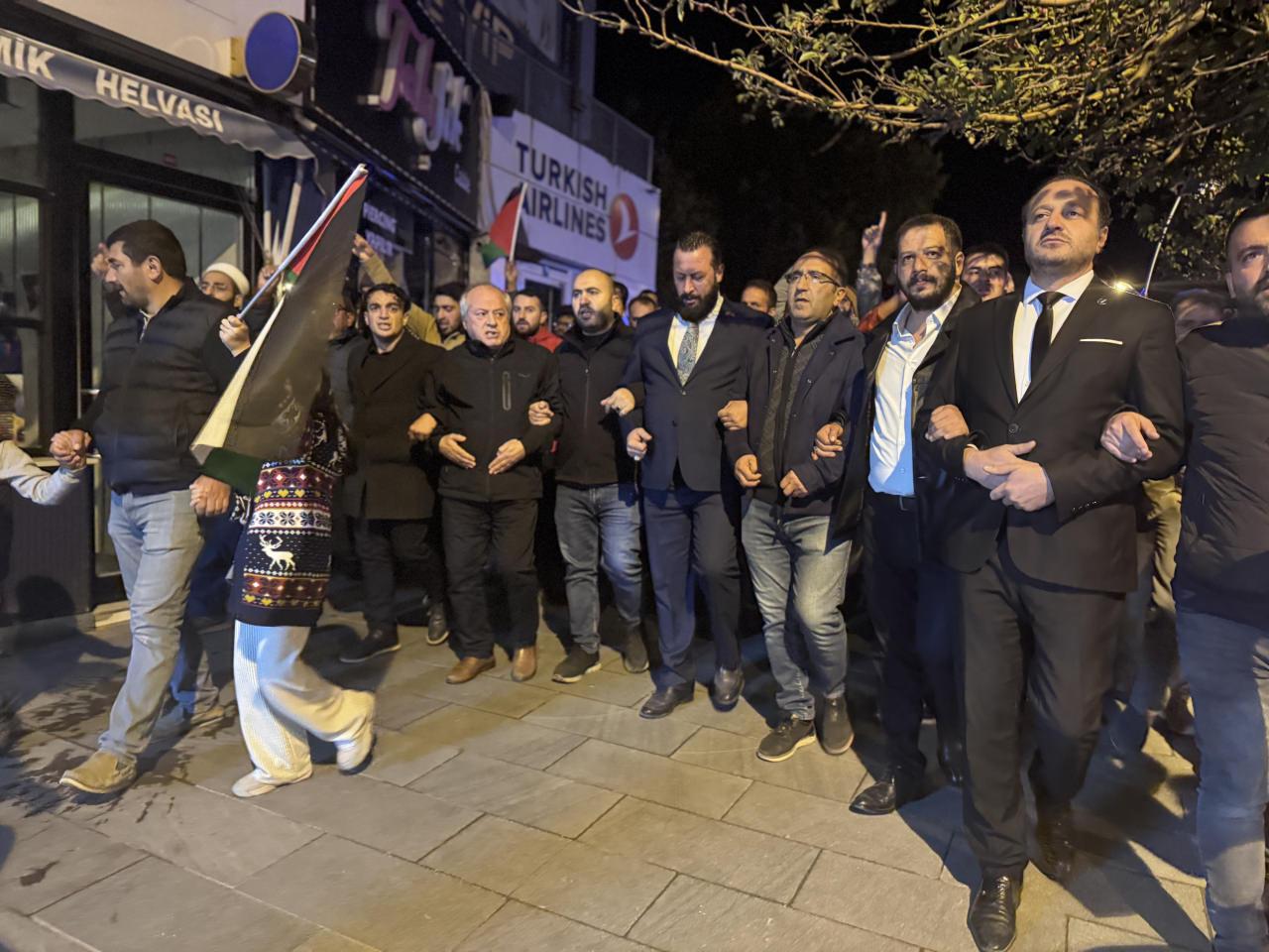 Marşlar eşliğinde yürüyen vatandaşlar, ellerinde Türk ve Filistin bayrakları ile pankartlar taşıdı.