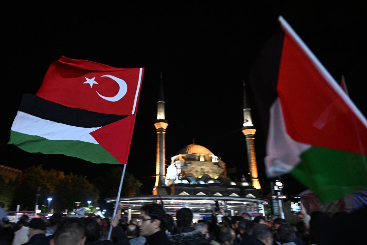 Ellerinde Türk ve Filistin bayrakları taşıyan küme dua edilmesinin akabinde dağıldı.