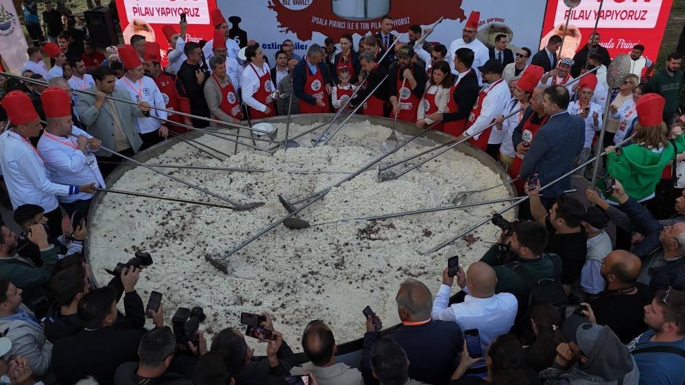 Kültür ve Turizm Bakanlığının Edirne’de düzenlediği “Yaşayan Miras Festivali” çerçevesinde, 6 ton pirinç pilavı pişirildi.