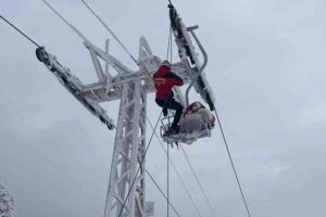 Edinilen bilgiye nazaran telesiyejin vites kutusunda yaşanan arıza sonucu kabinlerde bulunan vatandaşlar tahliye edilemedi.