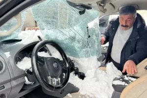 Kar kütlesinin düşmesi sonucu araçtaki Selami Demir, yaralandı. Yaralı Demir, ambulansla hastaneye kaldırıldı. Araçta da hasar oluştu.