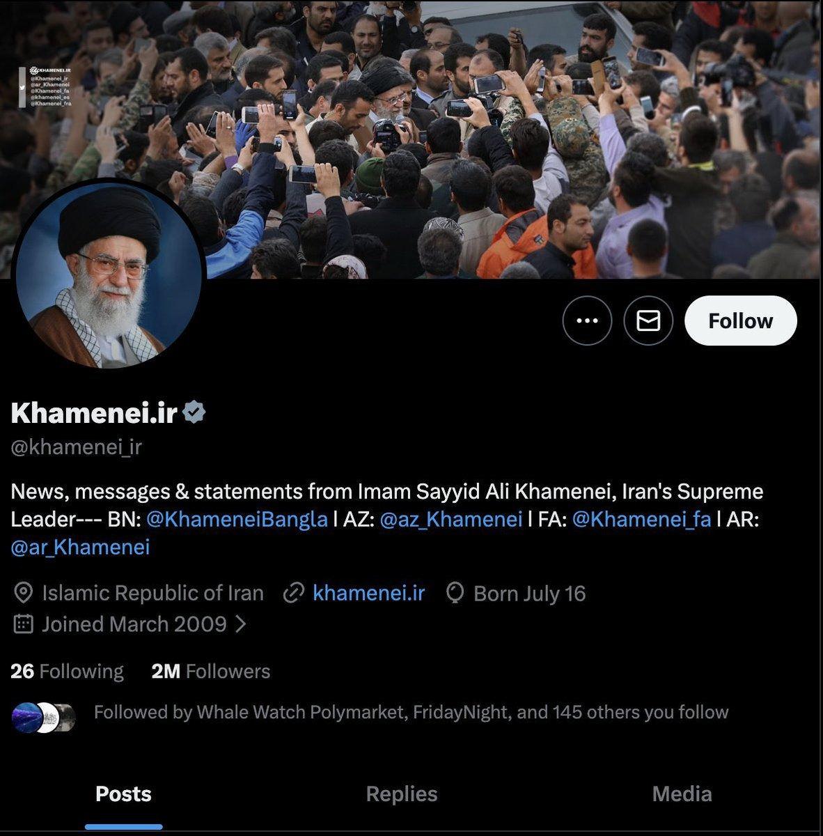 Bu gelişmenin akabinde x, İran dini lideri Hamaney’in hesabından İran bayrağını  kaldırıldı.
