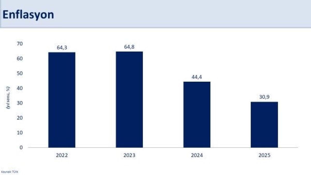 Türkiye’de TÜFE, aralıkta aylık bazda yüzde 0,89 artarken, yıllık enflasyon yüzde 30,89 ile 49 ayın en düşük seviyesine indi. Hükümetin kararlılıkla uyguladığı ekonomik programın meyveleri toplanmaya devam edilirken, ülkenin makroekonomik bilgilerindeki olumlu seyir dikkati çekiyor.