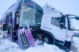 Bu esnada Mehmet Zülküf Çağlayan’ın kullandığı 23 AEV 640 plakalı otobüs de kargo aracına çarptı.